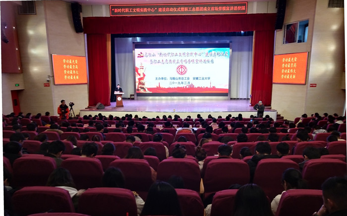 3月4日下午,由我校和马鞍山市总工会主办的劳模宣讲进校园专题报告会在秀山校区举行,市人大常委会副主任、市总工会主席杨勇义,副校长祖明,省总工会宣教部副部长张葵,市委宣传部副部长黄双喜,市文明办主任胡涛,市总工会党组书记、常务副主席李迅,我校学工部、工会、团委等相关部门负责同志出席报告会,来自各学院的500余名国家助学金获得者代表聆听了报告。