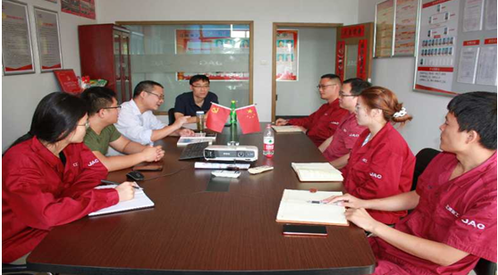 在安徽江淮银联重型工程机械有限公司,陶兆胜团队主要围绕AVG智能小车、图像识别技术、叉车的有限元分析等方面进行互动交流,通过算法分析使车体货叉根据分析结果改变适合叉取托盘位置的间距以及确定了叉车车架的有限元分析方案。