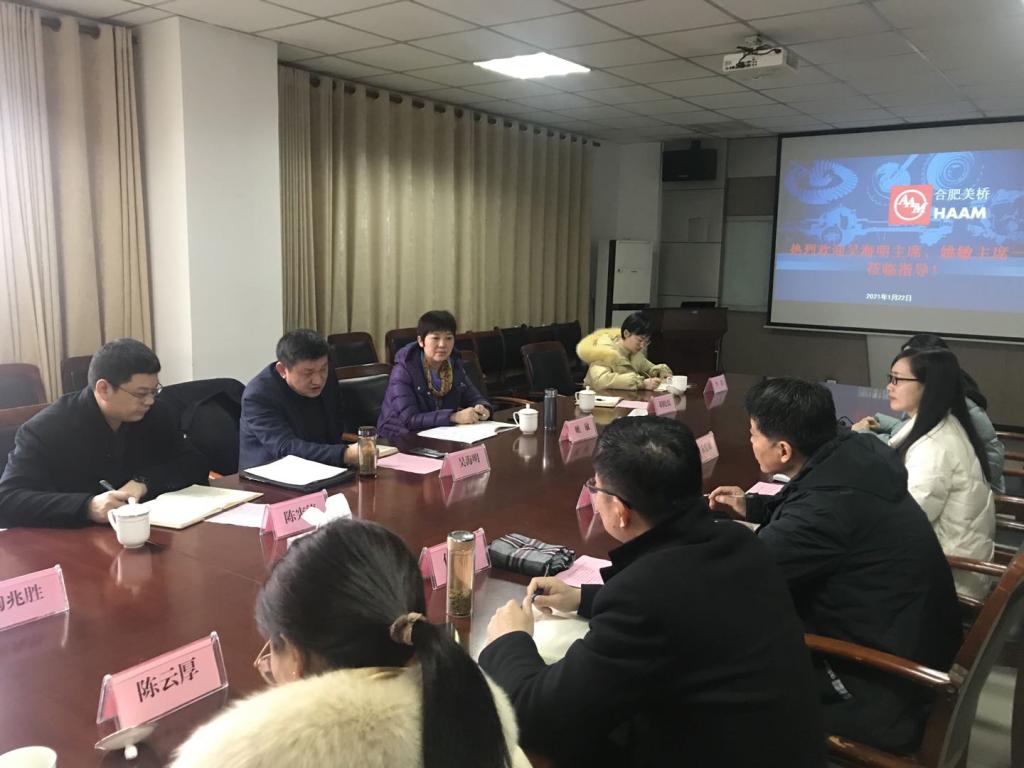 1月22日上午,安徽省教科文卫体工会主席吴海明一行,先后前往我校对接的合肥美桥汽车传动及底盘系统有限公司和安徽江淮银联重型工程机械有限公司两家企业,调研高校专家、科技人员进企业服务活动情况。校工会主席姚敏陪同调研。