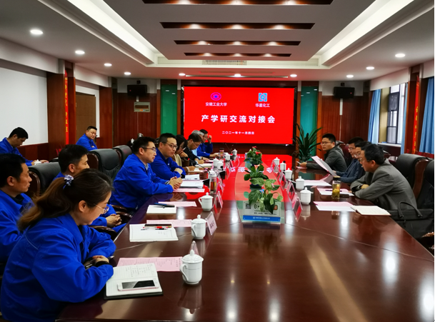 为促进高校科技成果转化并推动地方企业创新发展,根据省教科文卫体工会开展高校专家、科技人员进企业服务活动相关精神,在校工会协调安排下,11月4日,化学与化工学院党委书记李晓东带队走访安徽华星化工有限公司。副院长、教授张代林,院工会主席、教授乔红斌,院高分子材料系支部书记高宏,华星化工博士后科研工作站进站博士后单威龙,华星化工总工程师熊金华,副总经理、党委副书记刘德军及技术、环保、人事等部门负责人参加技术交流活动。和县经济开发区管委会党群部副部长王婷婷,安工大下派和县驻村第一书记胡卫东、郭道江应邀参会。