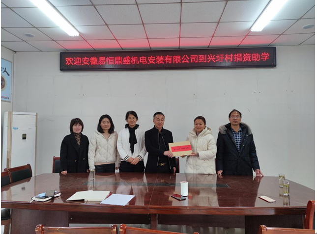 12月5日,在我校驻和县历阳镇兴圩村驻村工作队的牵线搭桥下,安徽易恒鼎盛机电安装有限公司赴兴圩村开展捐资助学活动。公司和历阳镇相关负责人、驻村工作队和村两委主要负责同志参加活动。