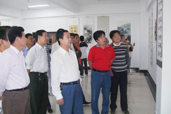 开展仪式后,汪光阳和大家一起兴致勃勃地观看了书画作品,对作品水平和此项活动开展给予较高的评价。