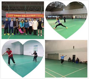 为了丰富老师们的文体生活,为广大羽毛球爱好者提供一个相互交流和切磋球技的平台,校工会于11月17、18日在奥体中心安工大羽毛球馆举办了“黄鹤楼杯”校羽毛球比赛。本次比赛分团体赛和单项赛。17日进行团体比赛,比赛包括男双、女双、混双。球员们经过热身运动、抽签分组等环节后,由校工会赵保平主席宣布比赛开始。九支代表队轮流上阵,精彩配合,经过上午3个多小时艰苦的小组赛和下午的淘汰赛,商学院羽毛球队取得团体第三的好成绩。