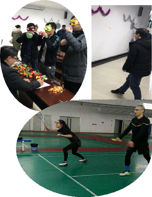 飞镖投射比赛中,参赛教师持镖、瞄准、中靶,一气呵成;掼蛋大赛中教师之间相互配合、妙招致胜;最热闹的是吹气球比赛,要求老师蒙住眼睛把气球吹爆后快速找到一个小橘子拨开吃掉,最后按照吹爆的气球和吃掉的橘子总数排名。现场欢声笑语不绝于耳,气氛热烈融洽。羽毛球双打比赛极其激烈,通过抽签形式,产生七组双打队员。李沁老师提前半个月做了准备,制定了赛制。老师在场地上尽情发挥,挥汗如雨,酣畅淋漓。